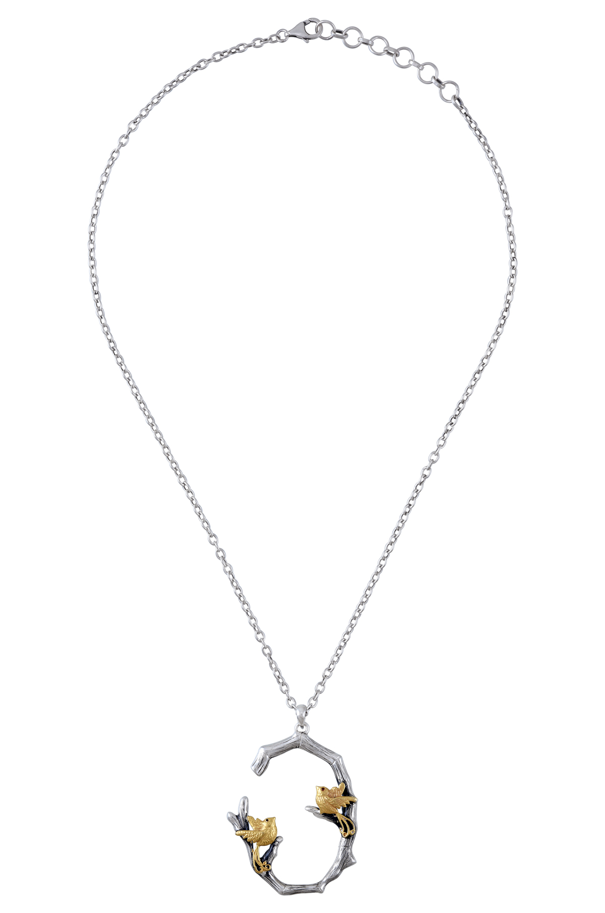 Silver Dual Tone Floral Birdsong Pendant With Chain