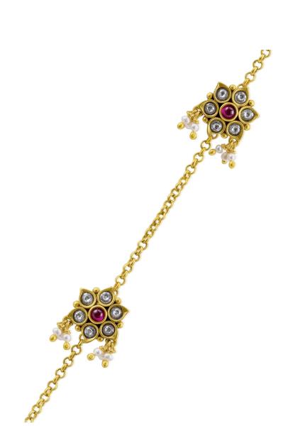 Composition: Gold plated silver with pearls & stones. Fastening: Button clasp. All our jewellery is handcrafted and therefore variations may occur.