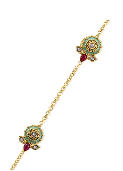 Composition: Gold plated silver with pearls & stones. Fastening: Button clasp. All our jewellery is handcrafted and therefore variations may occur.