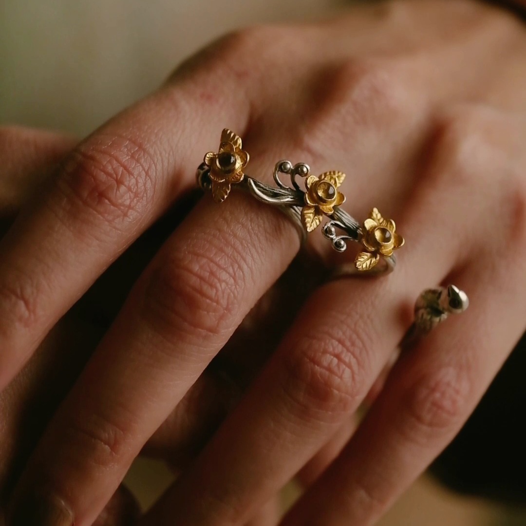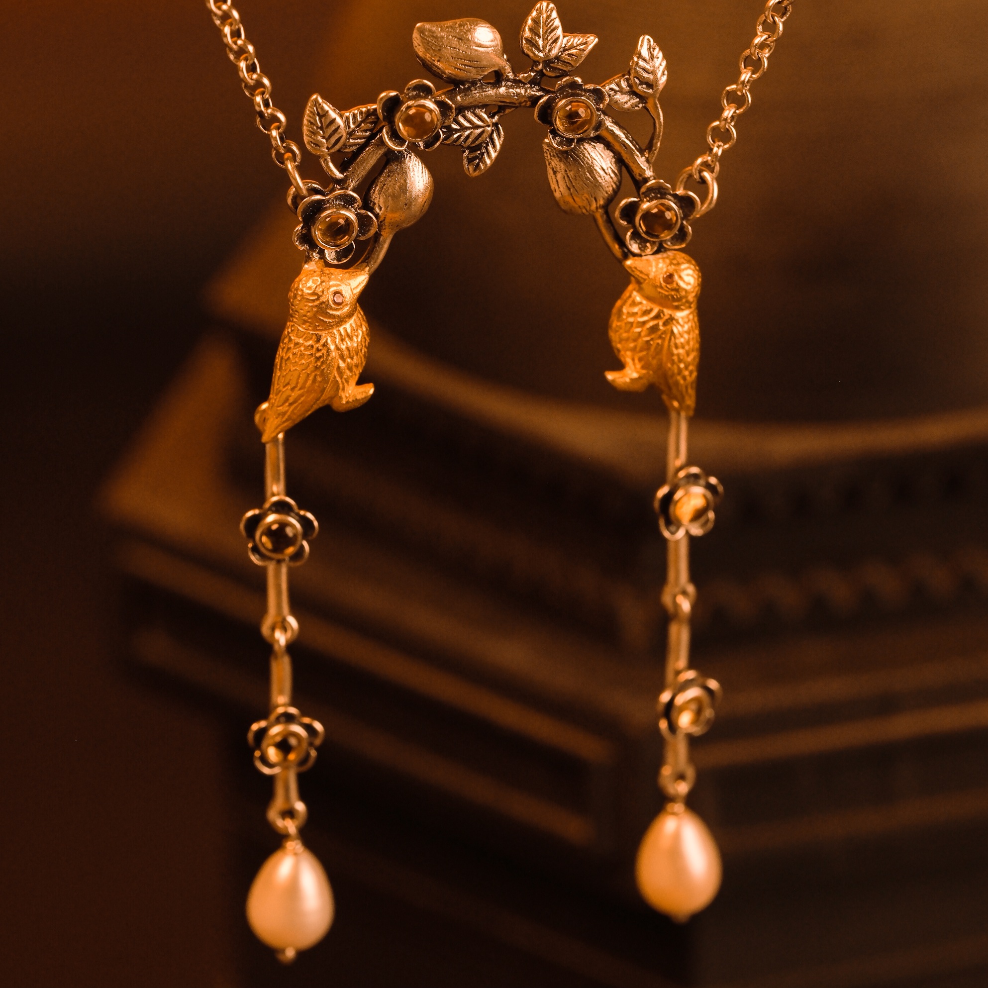 The Birdsong Collection captures the essence of nature through delicate bird motifs and shimmering crystals, artfully blending gold and silver to marry artisanal craftsmanship with the fleeting grace of nature.